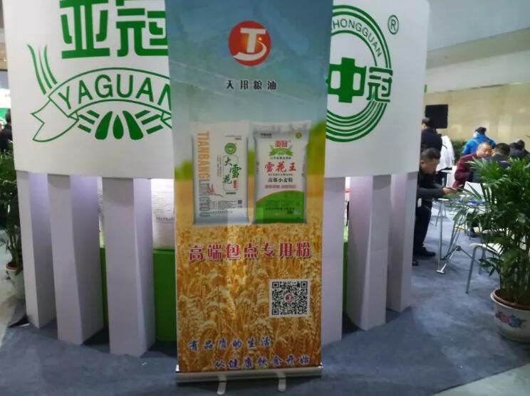 本次活动万家粮商汇集,山东天邦粮油为使广大经销商朋友详细、直观的了解天邦公司,了解公司旗下“亚冠”、“粉中冠”系列新产品,在本次展会上,特别搭建了精装展台,展示出了安全、绿色、健康、放心的高端专用型系列面粉,公司营销总监张亚峰带领管理层、销售人员和经销商朋友密切对接,认真听取客户的需求和建议,介绍公司产品特点,解答相关咨询。尤其今年“亚冠雪花王”、“粉中冠大雪花”等上市新品,以独有的特色和超高的性价比赢得了广大客户的一致赞赏。